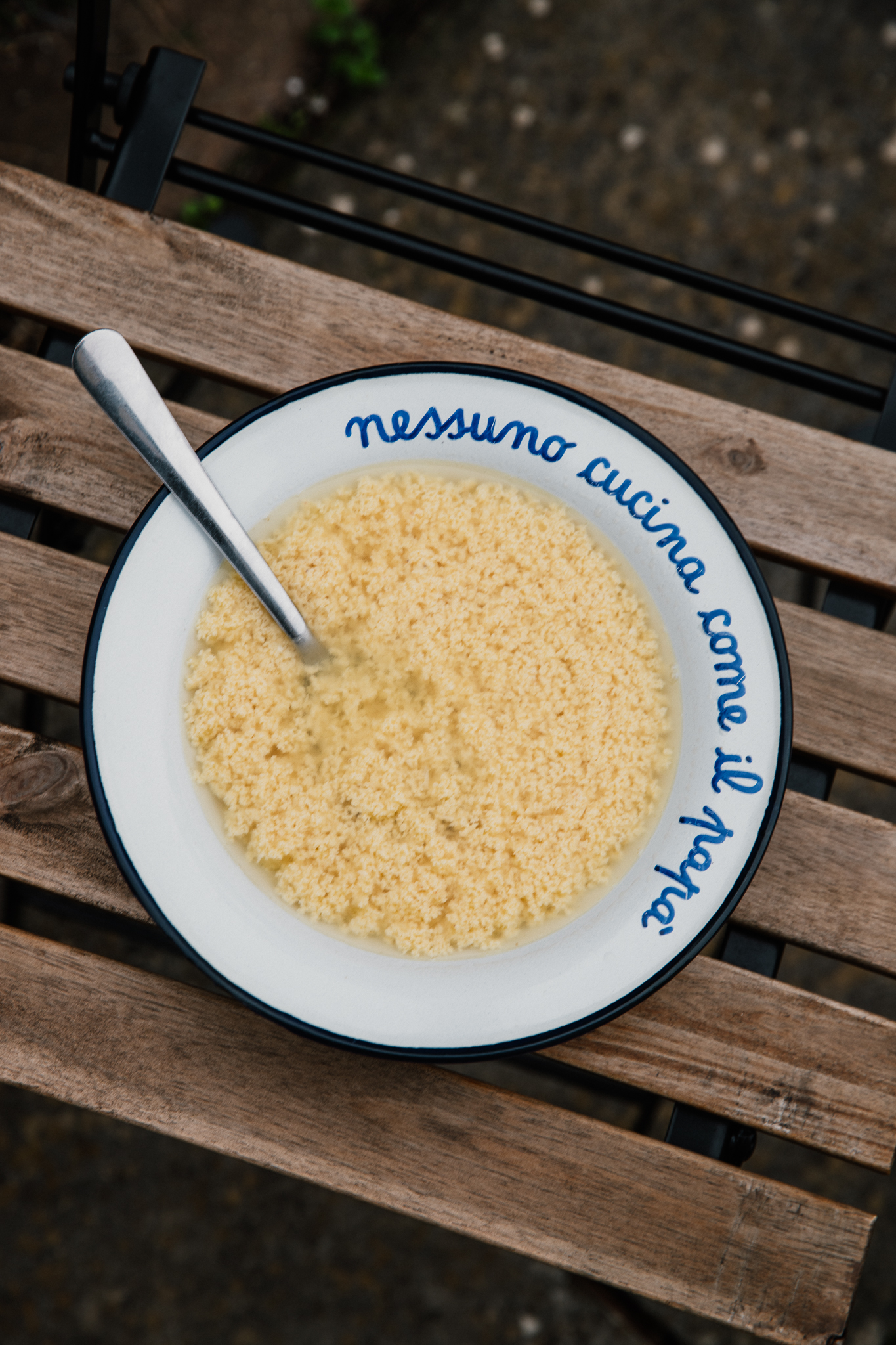 Latium Soupes et minestroni AutomneHiver 23 janvier 2026 Avis: 5/5 – (1 vote) Bouillon stracciatella Imprimer la recette La stracciatella in brodo, ou le bouillon simplissime et réconfortant qui vous fera retourner en enfance. Pour: 4 personnes Préparation: 05 min Cuisson: 05 min Ingrédients 4 oeufs80 g de parmesan râpéNoix de muscade1L de bouillon de viande ou de bouillon de légumes. Instructions Faites chauffer votre bouillon. Pendant ce temps, dans un bol, cassez les oeufs. Ajoutez le parmesan râpé et la noix de muscade, et mélangez bien le tout. Quand le bouillon boue, baissez la flemme (feu moyen), versez le mélange et faites cuire tout en mélangeant pendant cinq minutes. Le bouillon stracciatella est prêt.Servez dans chaque assiette et dégustez ! Signore e signori : je vous présente le bouillon stracciatella ou, en Italie, la « stracciatella in brodo ». Si vous êtes passionné.es de gastronomie italienne, vous avez sans doute que la stracciatella, en Italie, c’est un parfum de glace, et aussi le coeur crémeux de la célébrissime burrata. Mais saviez-vous que la stracciatella, c’est aussi le nom que l’on donne à une soupe très simple et pourtant tellement réconfortante, et véritable souvenir d’enfance pour de nombreux Italiens. Cette soupe consiste tout simplement à faire cuire des oeufs battus avec du parmesan et un peu de noix de muscade dans un bon bouillon bien chaud, en prenant soin de mélanger délicatement le bouillon pendant la cuisson, pour former de petits effilochés d’oeufs – les « stracci », en Italien. C’est d’ailleurs de là que vient le nom de la recette. Certains ajoutent à ce mélange un peu de chapelure, ou encore du zeste de citron. Quoiqu’il en soit, je vous recommande très chaleureusement d’essayer ce bouillon stracciatella chez vous, au plus vite ! Buon appetito, et a presto pour la prochaine recette ! Pour la recette en vidéo, c’est par ici. Pour plus de recettes italiennes, c’est par ici.