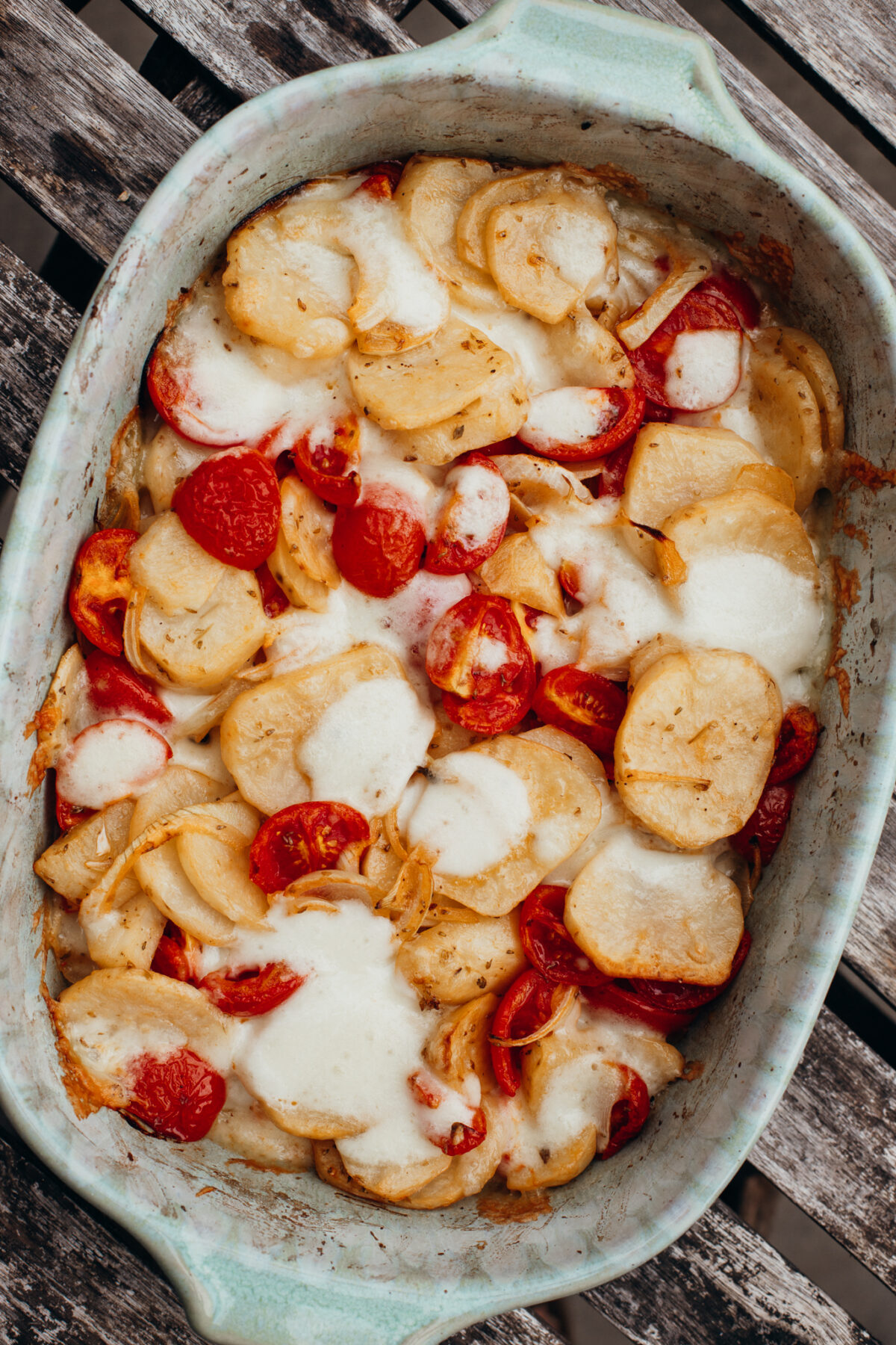 Sicile ContorniVégétarien Été 29 avril 2026 Avis: 5/5 – (1 vote) Pommes de terre à la sicilienne Imprimer la recette Aujourd’hui, direction Trapani pour des pommes de terre à la sicilienne. Pour être précis, la recette s’intitule « patate vastase ». Et vous allez voir, c’est très, très bon ! Pour: 6 personnes Préparation: 10 min Cuisson: 1h10 min Ingrédients 500 g de pommes de terre300g de tomates cerises1 oignonHuile d’oliveSelOriganDeux mozzarelle di bufala Instructions Faites chauffer votre four à 200 degrés, chaleur tournante.Épluchez les pommes de terres et coupez-les en tranches de plus ou moins 5 millimètres d’épaisseur.Mettez les tranches de pommes de terre dans un plat pour le four.Lavez et découpez les tomates cerises en deux, et ajoutez-les au plat. Découpez un oignons en lamelles pas trop fines, et ajoutez-les au plat également. Versez un généreux filet d’huile d’olive sur votre plat et mélangez tous les ingrédients à la main. L’huile doit bien recouvrir les pommes de terre, les tomates cerises et l’oignon. Ajoutez du sel et beaucoup d’origan. Mélangez à nouveau. Faites cuire les patate vastase 35 à 45 minutes au four. Après quoi, sortez le plat du four et émiettez une belle mozzarella di bufala sur votre plat. Remettez-le au four pendant 5 à 10 minutes. Sortez le plat du four, laissez refroidir quelques minutes et dressez sur chaque assiette. Buon appetito ! Direction Trapani pour des pommes de terre au four à la sicilienne. Des pommes de terre au four pas comme les autres. Qui sentent bon l’été, les tomates, l’origan. Pour être précis, cette recette s’appelle « patate vastase ». Elle vient de la région de Trapani. Et c’est d’ailleurs lors de mon séjour dans le nord-ouest de la Sicile que je l’ai découverte, et que j’ai été immédiatement conquis ! Idéale pour accompagner une grillade de viandes par exemple, ou, mieux encore, un bon poisson grillé. Bref, vous n’avez plus qu’à la refaire chez vous ! Pour la recette en vidéo, c’est par ici. Pour d’autres recettes italiennes, c’est par ici. Et pour mes carnets de voyage en Italie, c’est par ici.